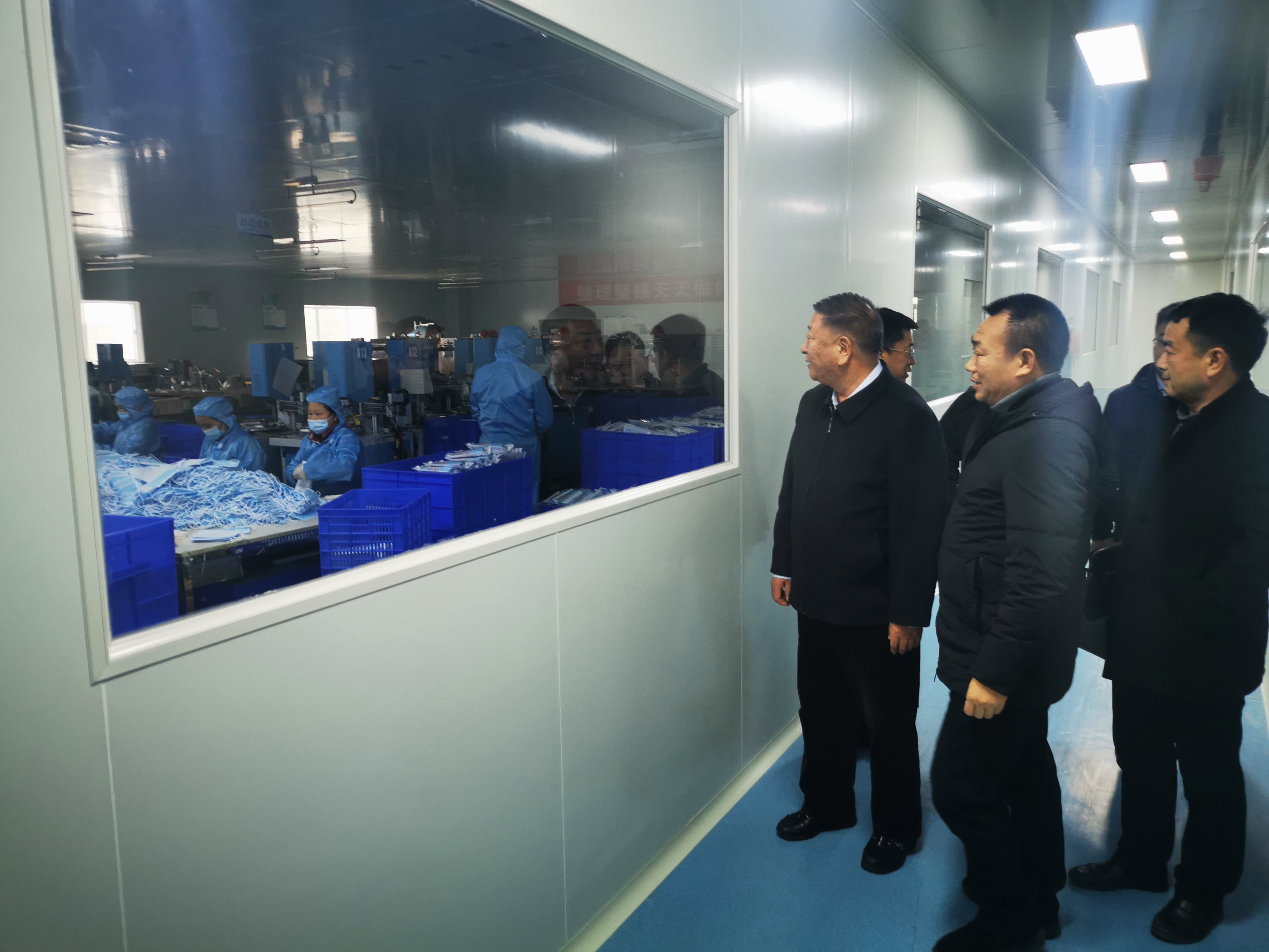 期間,領(lǐng)導(dǎo)一行在董事長周祚新的帶領(lǐng)下,參觀了我司醫(yī)療器械產(chǎn)品無塵生產(chǎn)車間,在周董的介紹下了解到,寰宇股份是懷化唯一一家醫(yī)用防護(hù)服生產(chǎn)、擁有無菌防護(hù)產(chǎn)品生產(chǎn)資質(zhì)、醫(yī)用防護(hù)口罩、醫(yī)用防護(hù)服承擔(dān)湖南省應(yīng)急防疫物資能力建設(shè)項(xiàng)目的企業(yè)。對于寰宇能在疫情防控期間為社會(huì)做出的貢獻(xiàn),馬煥榮總經(jīng)理表達(dá)出了深深的敬佩之情。