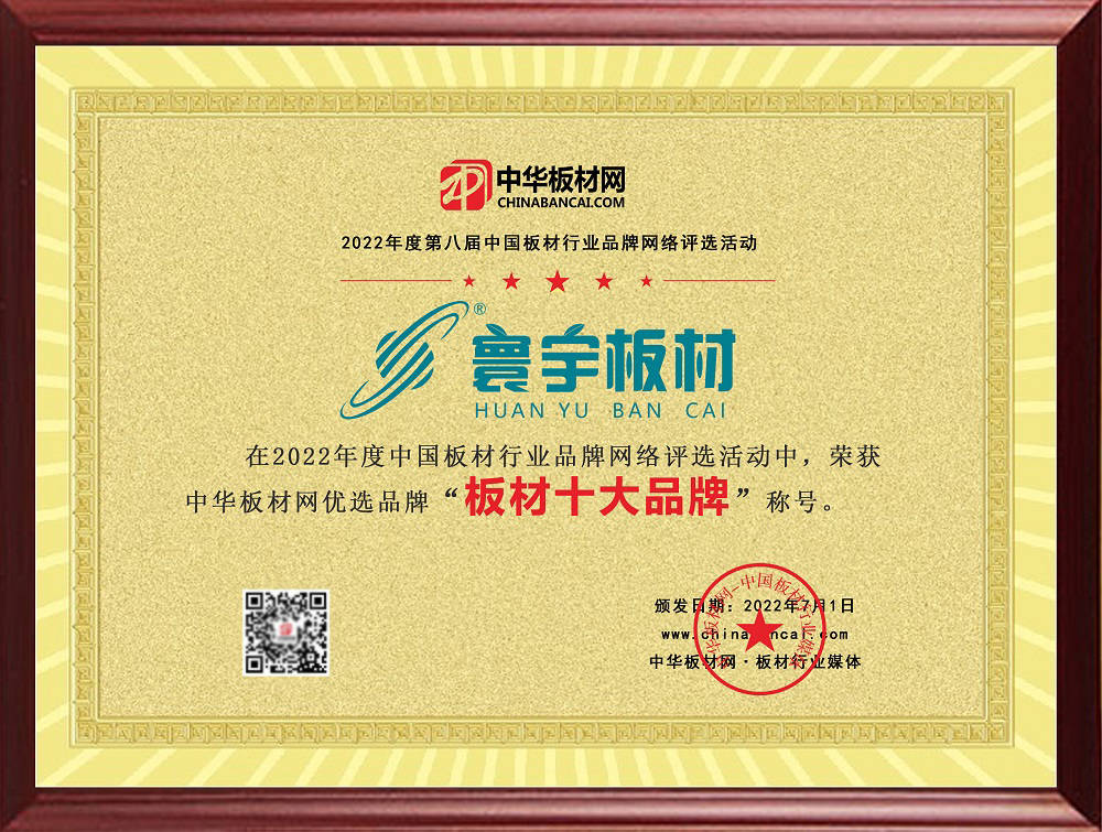 400-185-6711助力板材企業(yè)品牌成長,打造板材行業(yè)品牌標桿。中華板材網(wǎng)初心如磐,同心同路同行。2022年7月1日,第八屆2022年度中國板材行業(yè)品牌網(wǎng)絡評選活動圓滿收官,各項排行榜重磅發(fā)布!祝賀寰宇板材榮獲2022年度中華板材網(wǎng)優(yōu)選榜“板材十大品牌”稱號。